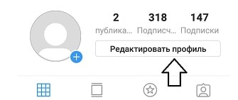 - Из ленты перейти на страницу своего аккаунта и нажать на кнопку “Редактировать профиль”, размещенную справа от аватарки.