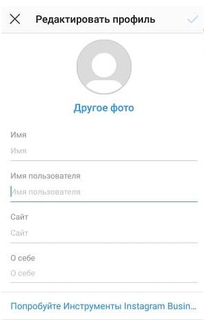 - Перед вами откроется страница, в которой вы можете добавлять/изменять всю информацию о профиле, такую как никнейм, ссылку на сайт и информацию о себе. Последний пункт “О себе” — это и есть шапка инстаграма, которая будет отражена в профиле.