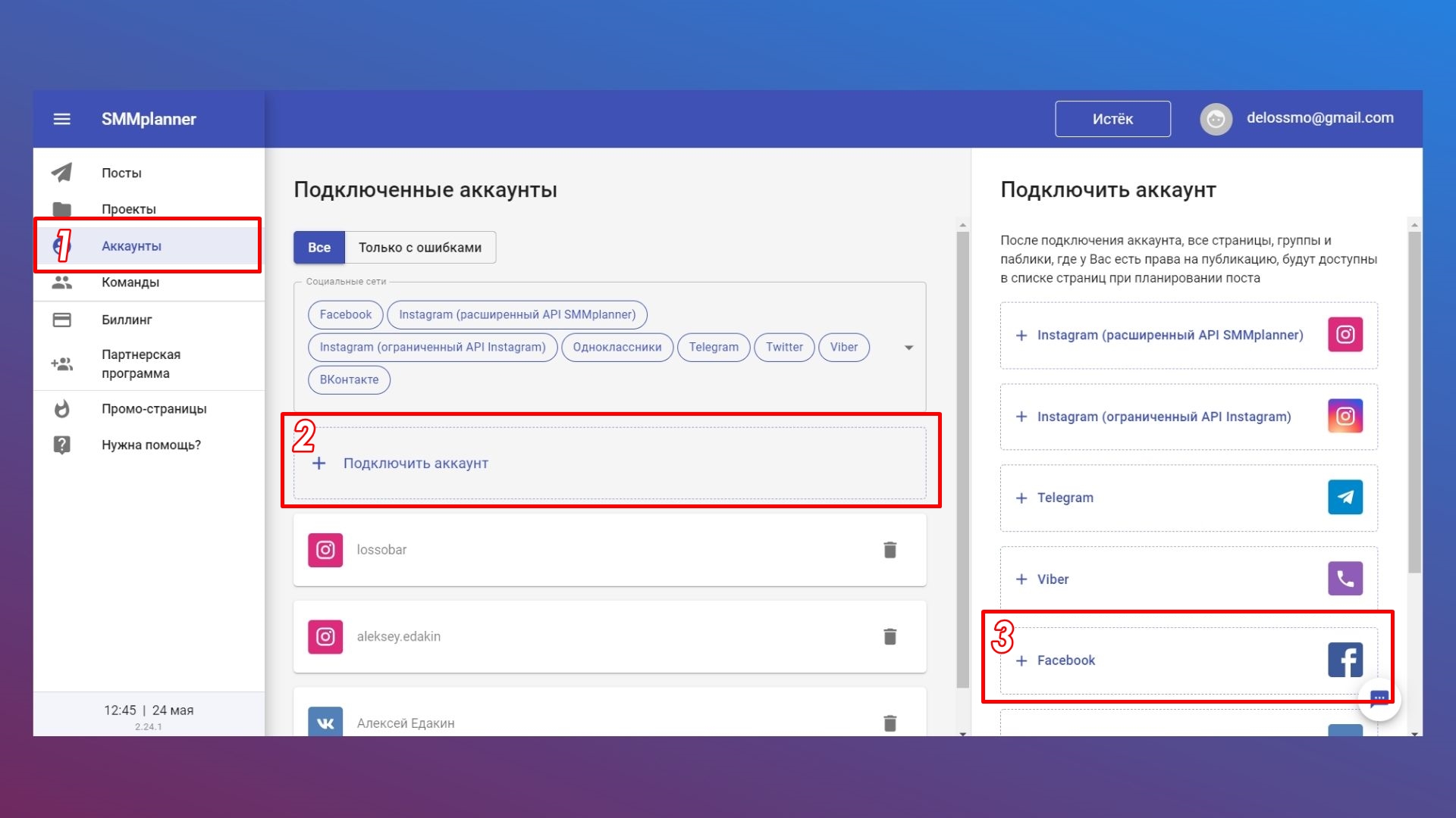 Шаг 1. Подключаемся. Переходим в раздел «Аккаунт» и выбираем пункт «+ Подключить аккаунт».