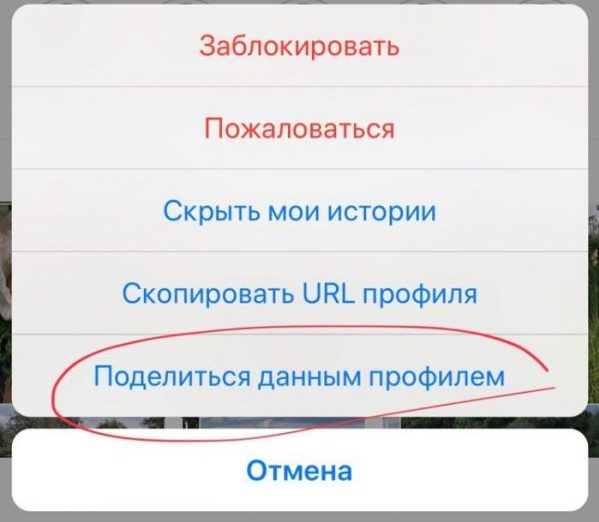 Иногда возникает необходимость дать ссылку на Инстаграм другого пользователя. Для этого можно использовать аналогичные методы. Только в мобильном приложении для этого предусмотрена специальная опция. Чтобы воспользоваться ею делаем следующее: