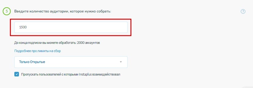 6. Далее нужно указать число необходимых аккаунтов для сбора базы.